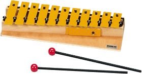 The glockenspiel has a high quality resonator box with well tuned bars including two F# and one Bb bar. This is an ideal introductory glockenspiel for preschool or kindergarten children.